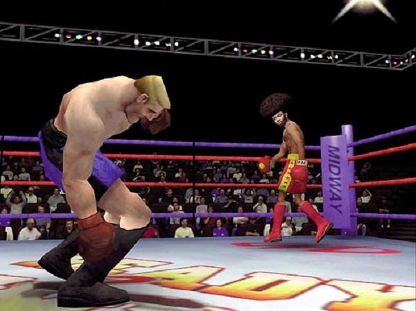Une fois sur place à l’hypermarché du coin, les clients étaient scotchés, tout comme moi, par un jeu de boxe déjanté tournant sur la nouvelle Sega Dreamcast! J’ai nommé Ready 2 Rumble! Voir les dégats sur la tronche des boxeurs ainsi que leurs mimiques c’était du jamais vu pour l’époque! Magnifique, drôle et doté d’une maniabilité arcade ce Ready 2 Rumble à conquis les joueurs de l’époque! Rendez vous compte, fin 99 la Nintendo 64 montrait des faiblesses techniques avec son brouillard visuel, et la cultissime Playstation 32 bits commençait a montrer ses limites pixellisées après de nombreuses années de service!